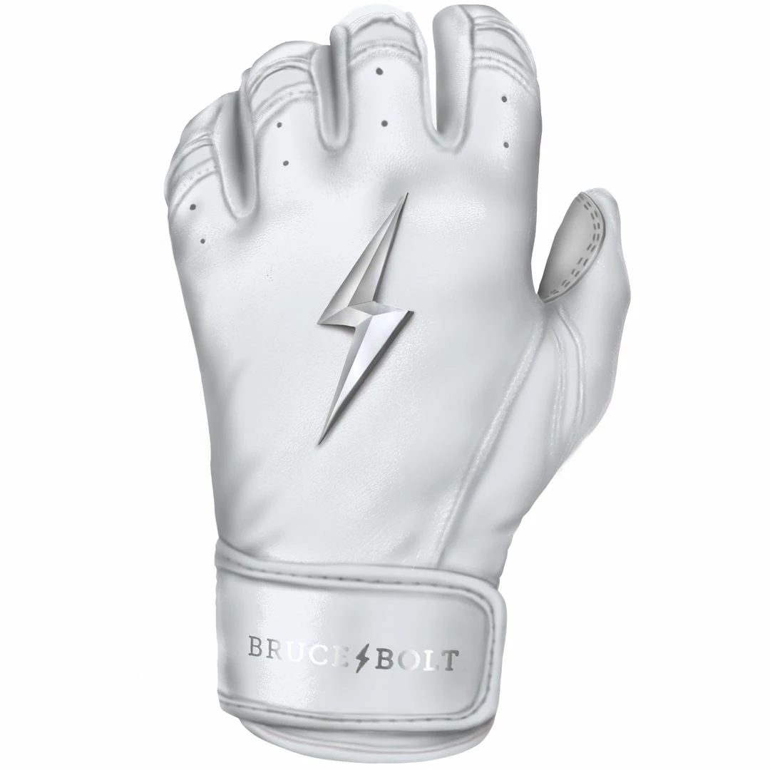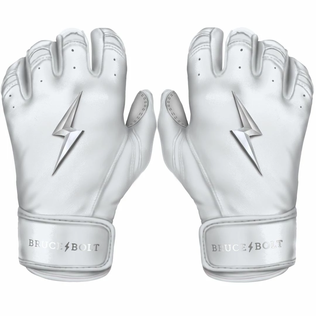 HIGHEST QUALITY, MOST DURABLE BATTING GLOVE IN BASEBALL: Each pair of BRUCE BOLT batting gloves are handmade by skilled craftsmen using only the highest quality 0.9mm Cabretta leather and stitching techniques which makes our gloves buttery soft but more durable than any other glove on the market.