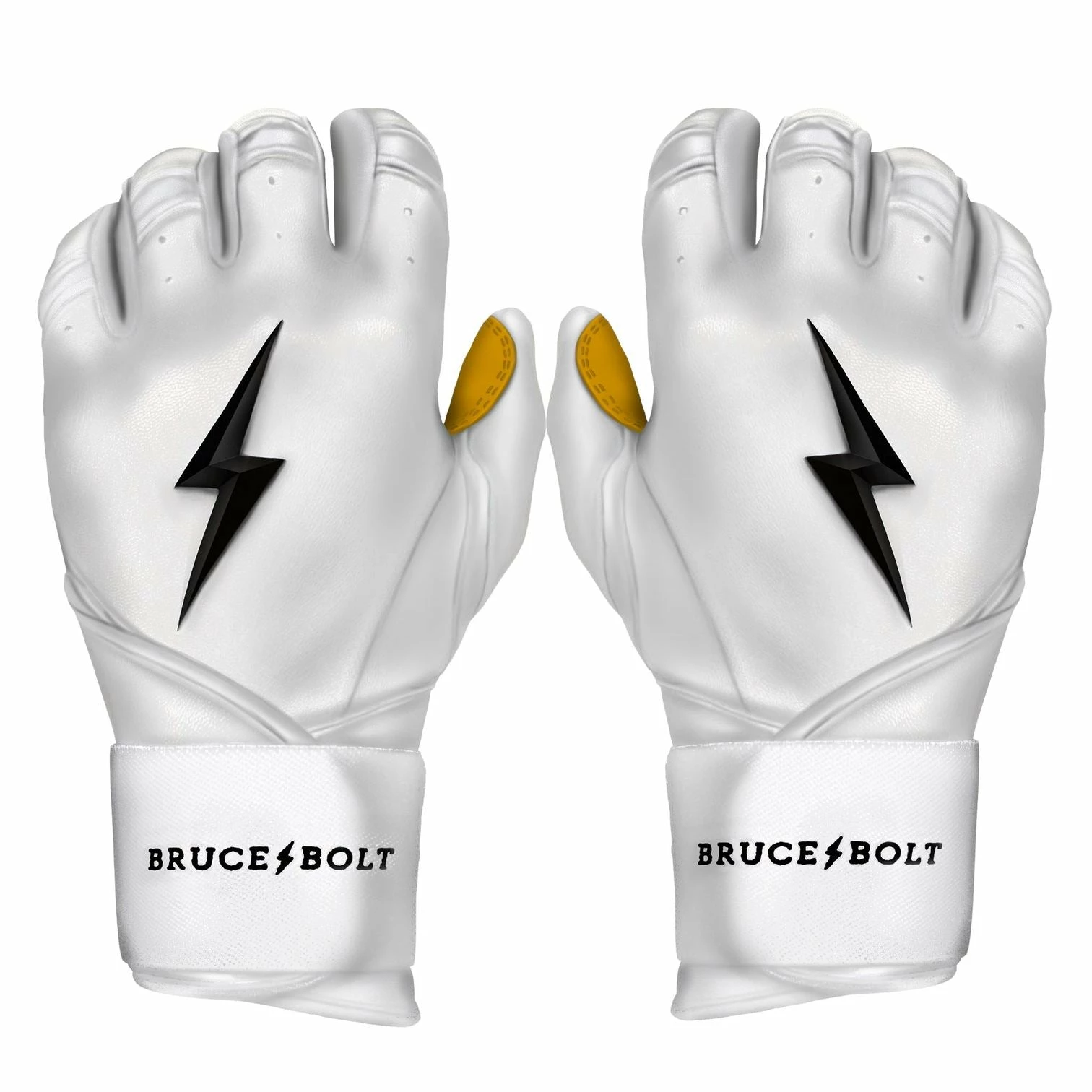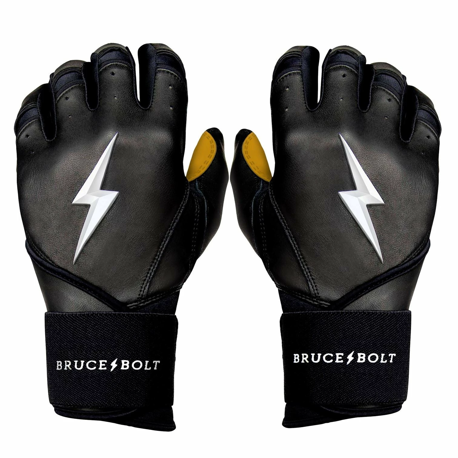 HIGHEST QUALITY, MOST DURABLE BATTING GLOVE IN BASEBALL: Each pair of BRUCE BOLT batting gloves are handmade by skilled craftsmen using only the highest quality 0.9mm Cabretta leather and stitching techniques which makes our gloves buttery soft but more durable than any other glove on the market.