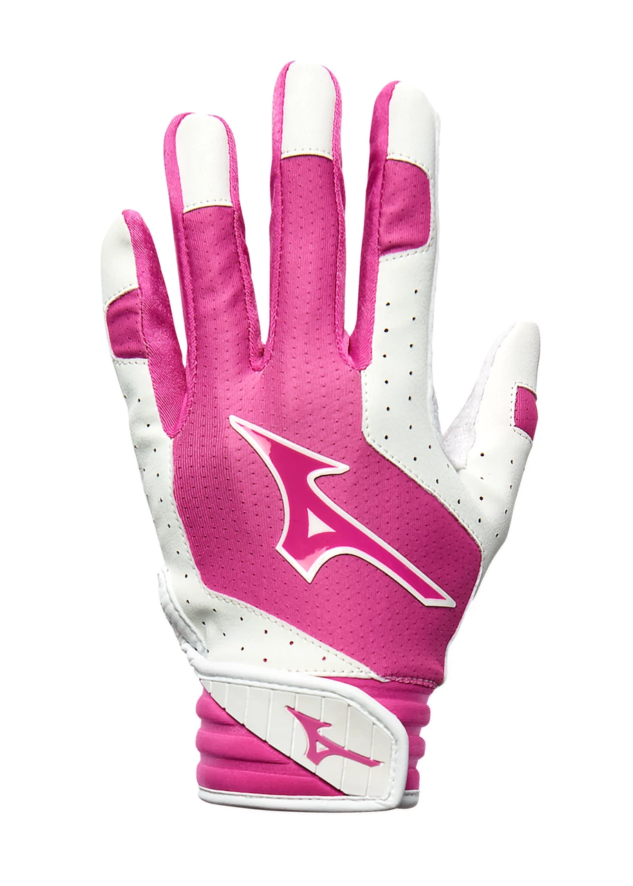 Designed with direct input from softball legend Jennie Finch, the Finch Youth batting glove was created with the young softball player’s specific needs in focus. Features a nonslip, padded Mizuno ShockPalm to better absorb vibration for enhanced comfort. Also features an FlexMesh back designed to increase flexibility and breathability.