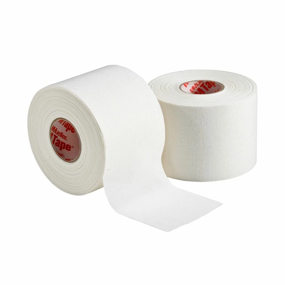 Mueller® MTape provides firm support and compression, ideal for most taping applications. Consistent unwinding to the core for fast and effective taping. 100% cotton cloth with zinc oxide based adhesive.