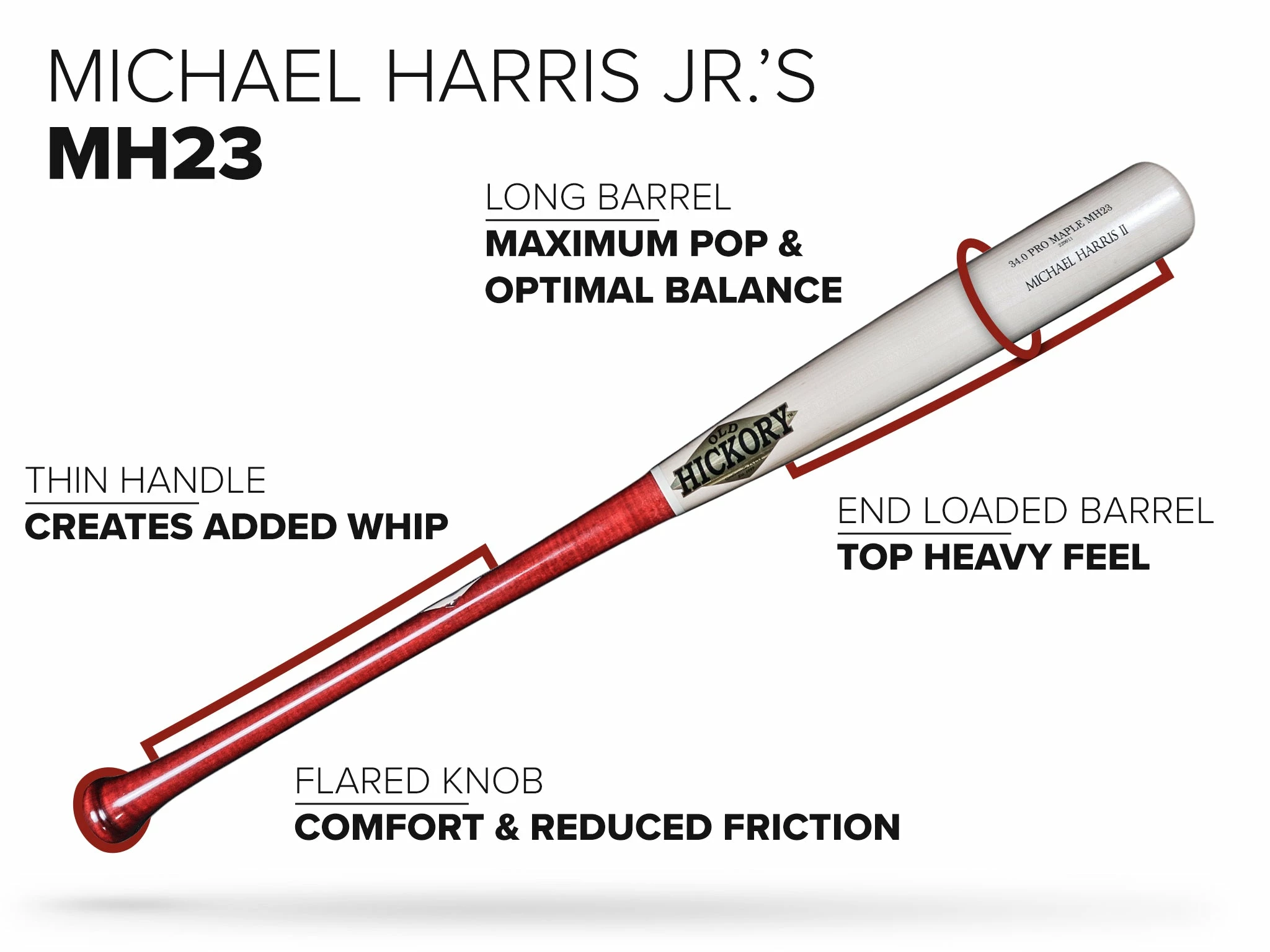 New for 2023, Michael Harris II’s Old Hickory MH23 is now available! Swing the same Old Hickory bat that Money Mike does. You can now order Michael’s exact bat, complete with his name engraved. The Old Hickory MH23 has a 243 style barrel and a 271 style handle with a flared knob. This end loaded bat is designed for power at the plate!