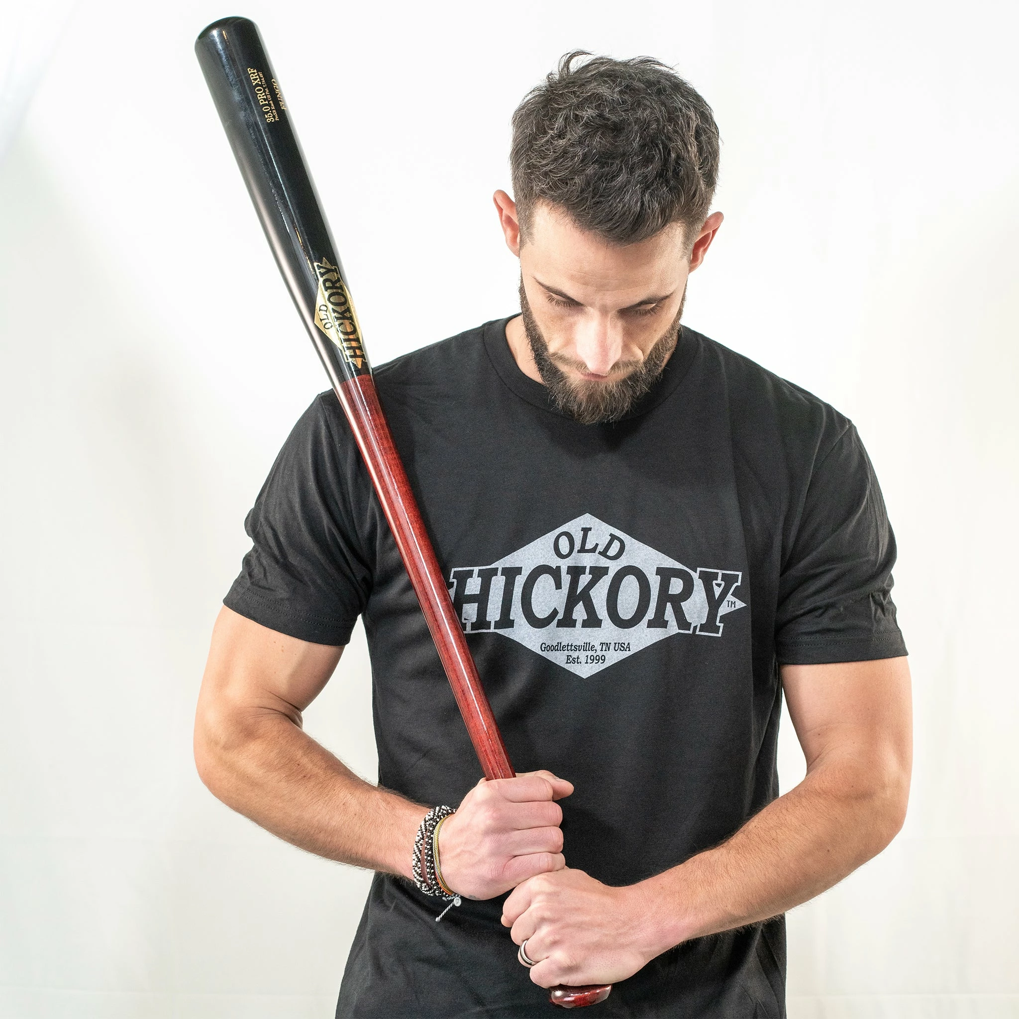 The XRF is a solid maple fungo, with the Pro XR angled knob.