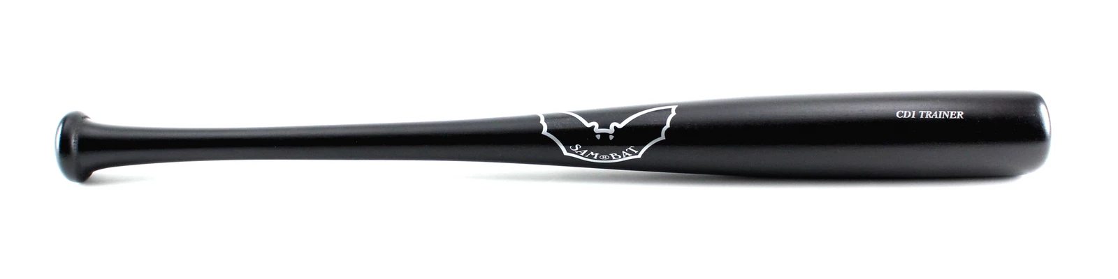 The one-handed trainer is a shortened Sam Bat model with added weight, perfect for hitting off of a tee and building strength in your swing.