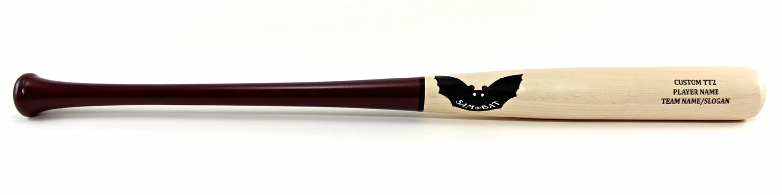 The SAM BAT TT2 has a long sweet spot for advanced hitters. The knob is a small tapered knob, similar to that of the KB1. All custom maple SAM BATs are crafted from professional grade hard rock maple for outstanding strength, longevity and performance.